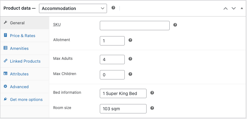 Creating a new accommodation/room product is almost the same as creating a regular WooCommerce product.