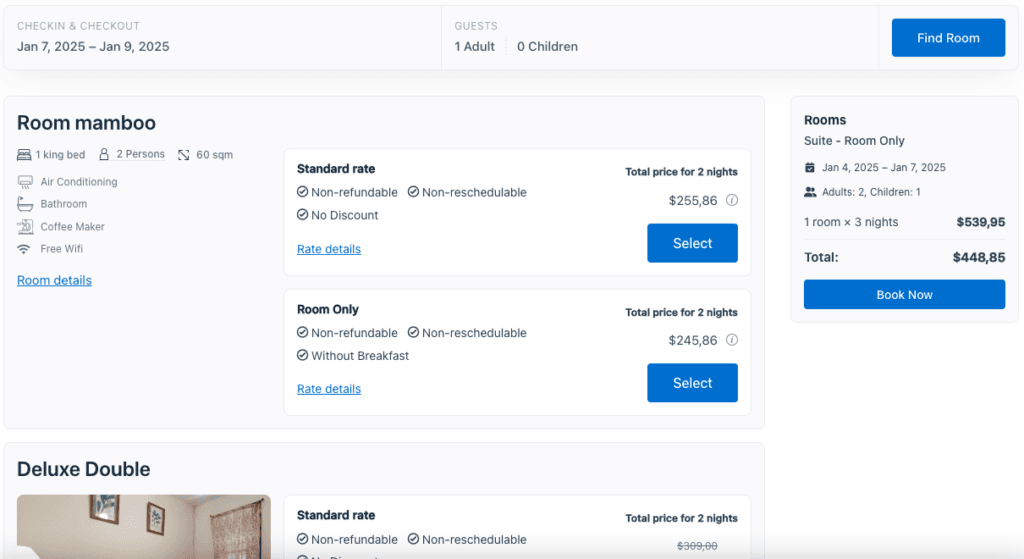 This shortcode shows the availability results along with the quick booking process.
