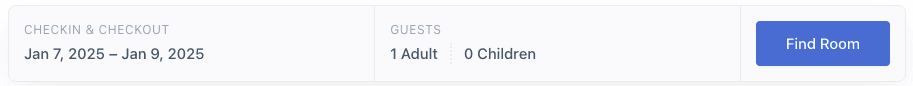This shortcode displays the availability search form, e.g., on the homepage.