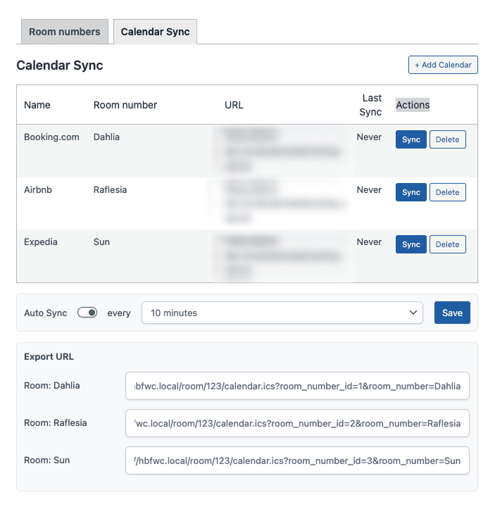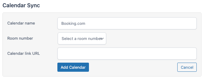 The Calendar Sync tab lets you connect each room’s availability to external OTA platforms.